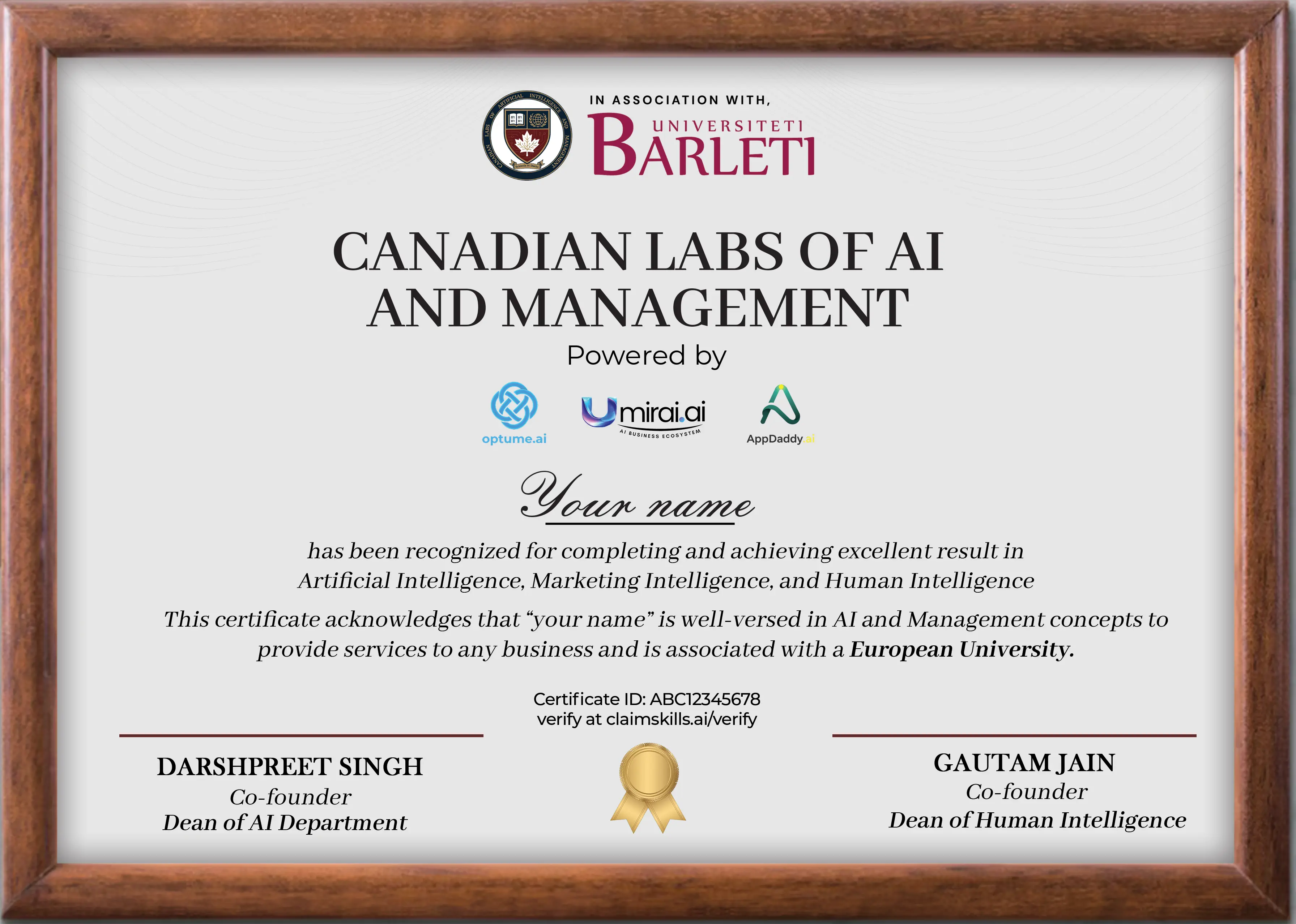 Copyright Β© Canadian Labs of Artificial Intelligence and Management (CLAIMSKILLS.AI)